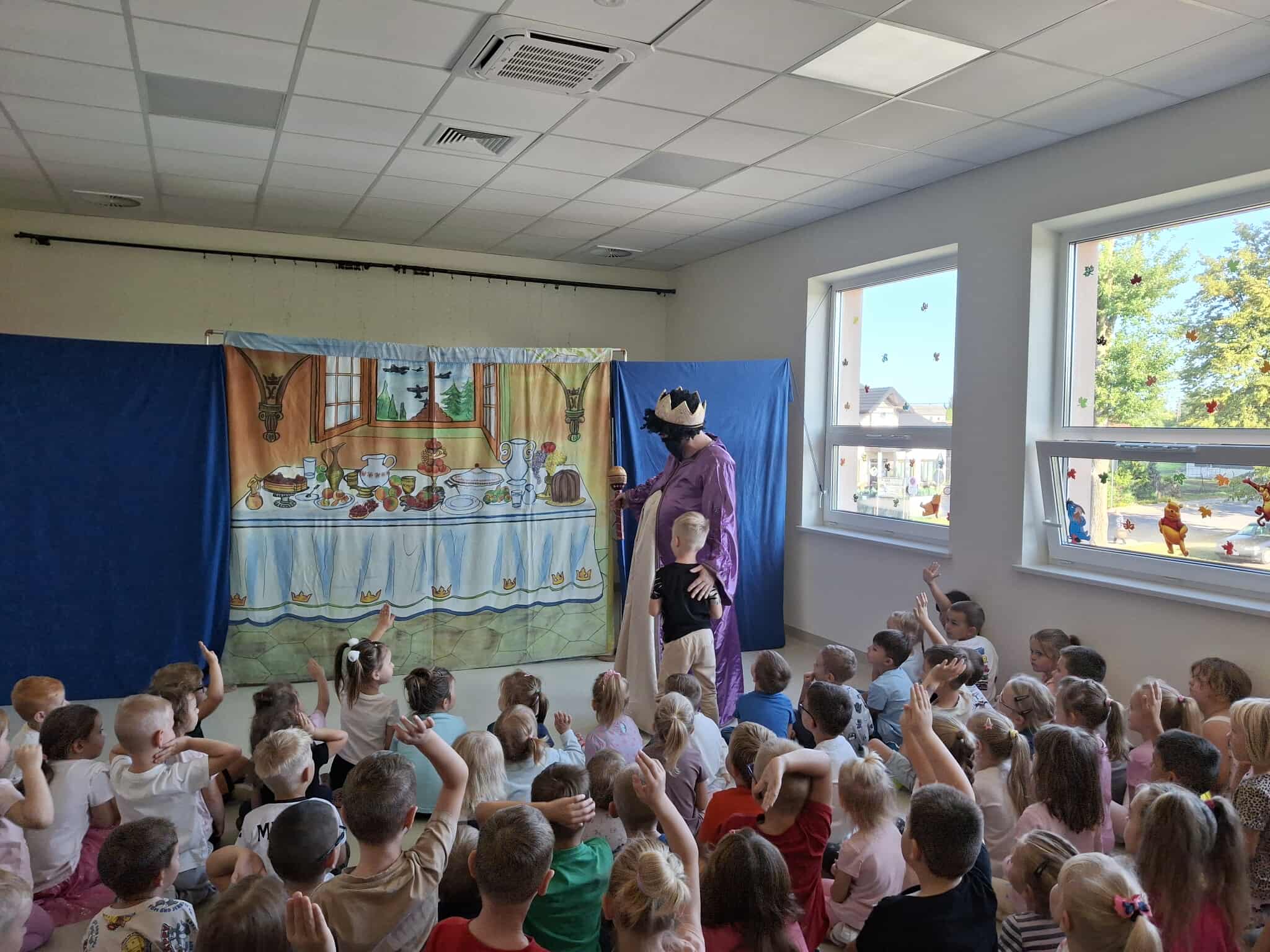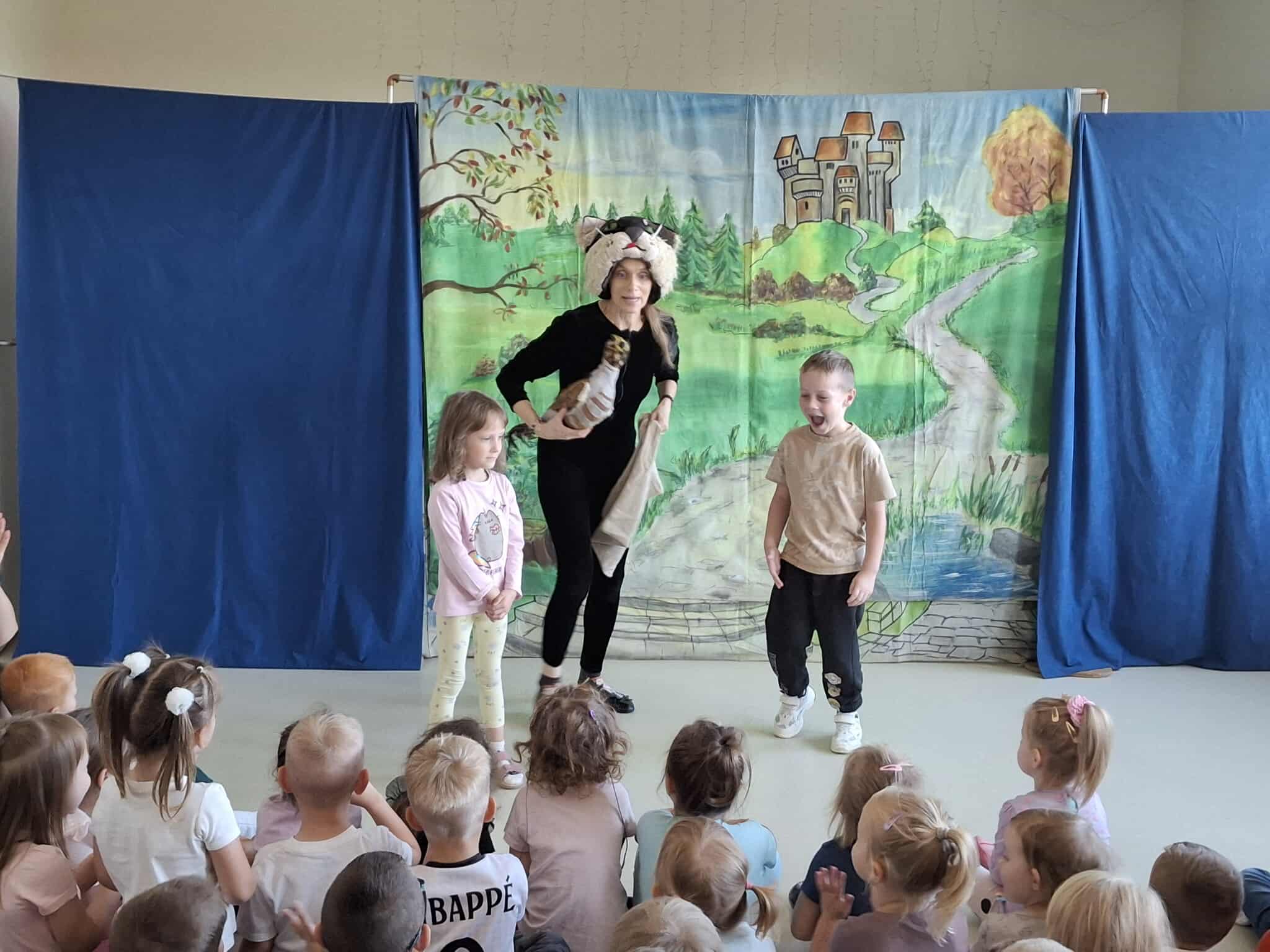 Dnia 12 września 2025r w naszym przedszkolu mogliśmy obejrzeć teatrzyk pt: „Kot w butach” wystawiony przez współpracujących z nami aktorów ze studia teatralnego KRAK-ART z Krakowa.Przedstawienie było pełne zabawnych sytuacji i dialogów, które uczyły dzieci jak ważna jest przyjaźń. Po raz kolejny mogliśmy się przekonać, że teatrzyk to świetna forma zabawy i nauki.