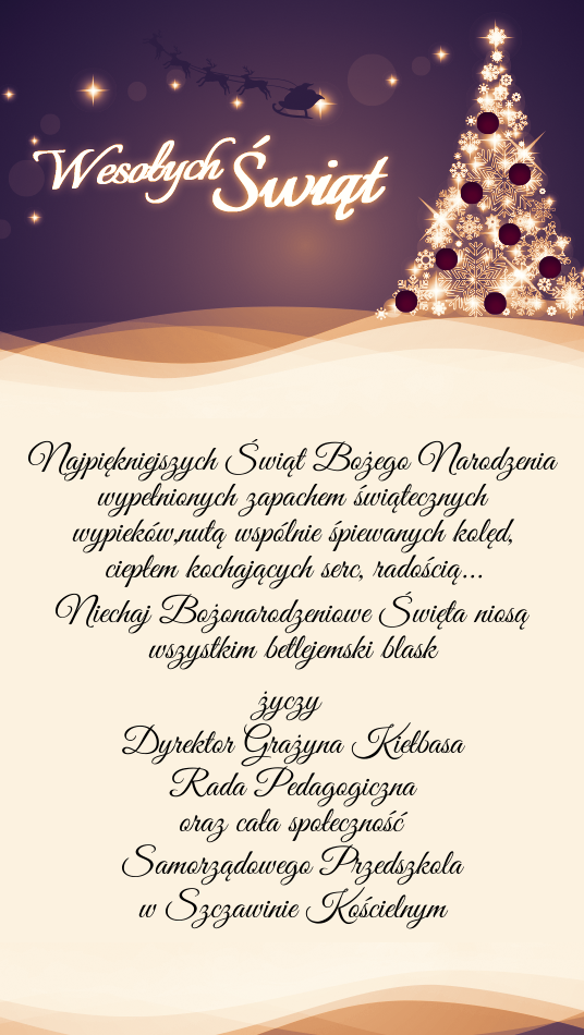 od całej społeczności Samorządowego Przedszkola w Szczawinie Kościelnym